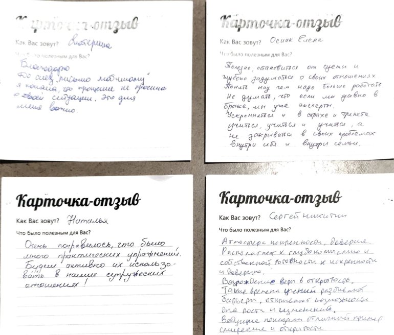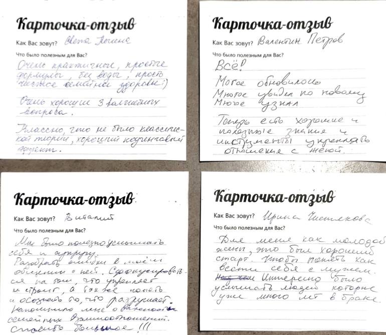 Во время семинара была возможность не только учиться теории, но попрактиковаться и обрести навыки. А также, мы дали присутствующим уже проверенные инструменты, которые помогают в отношениях.